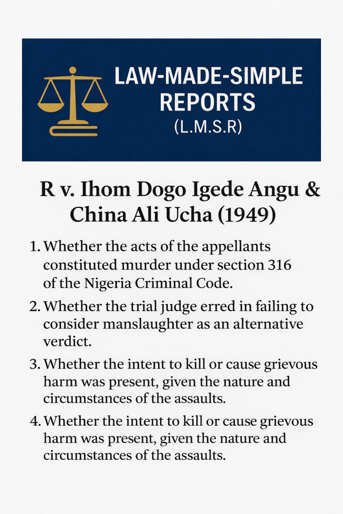 Issues for Determination R v. Ihom Dogo Igede Angu & China Ali Ucha (1949)